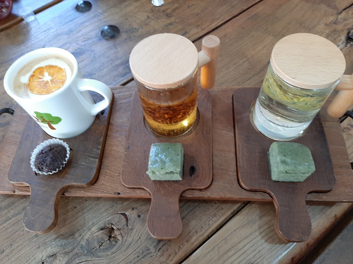 As you approach the café, nestled along a mountain road, you are welcomed by the fragrant scents of blooming herbs and the soft rustle of leaves, creating an inviting atmosphere that beckons you to relax. The outdoor seating area is a perfect spot to bask in the gentle breezes while overlooking the enchanting surroundings. Customers have raved about the experience, with one visitor noting the calming sensation of sipping coffee under the café's distinctive roof, truly enhancing the essence of tranquility.